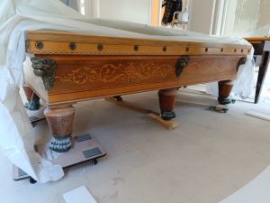 Restauration d’un billard Charles X placage de palissandre de Rio