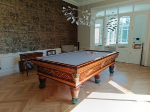 Restauration d’un billard Charles X placage de palissandre de Rio