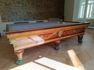 Restauration d’un billard Charles X placage de palissandre de Rio